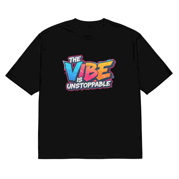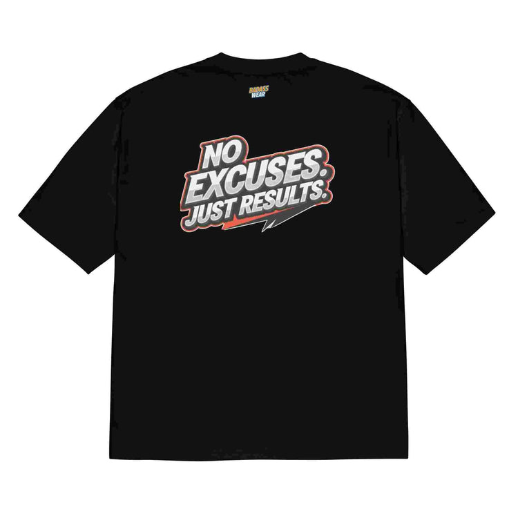 Statement Graphics: The front features a vibrant "THE VIBE IS UNSTOPPABLE" graphic, while the back displays a powerful "NO EXCUSES. JUST RESULTS." message. These bold prints make the shirt a true conversation starter.