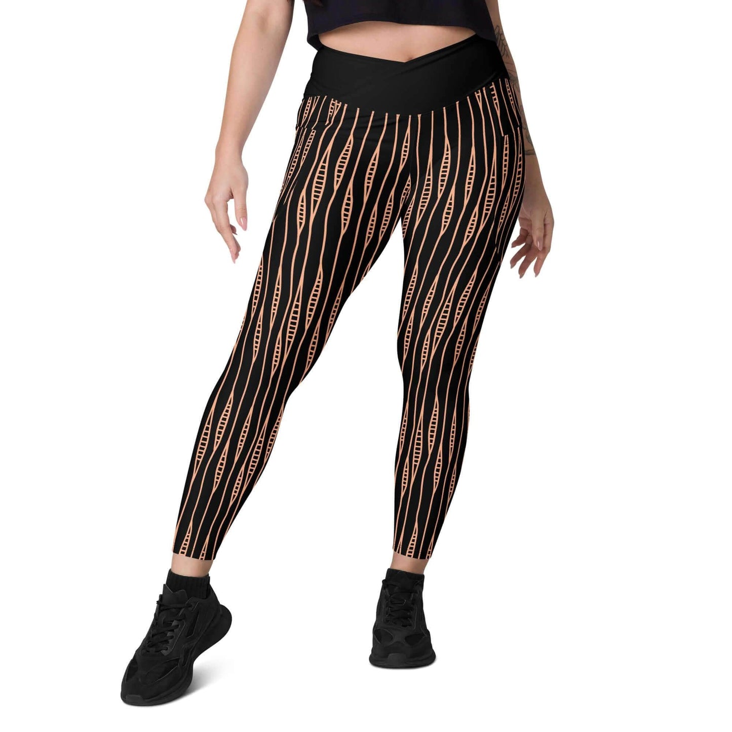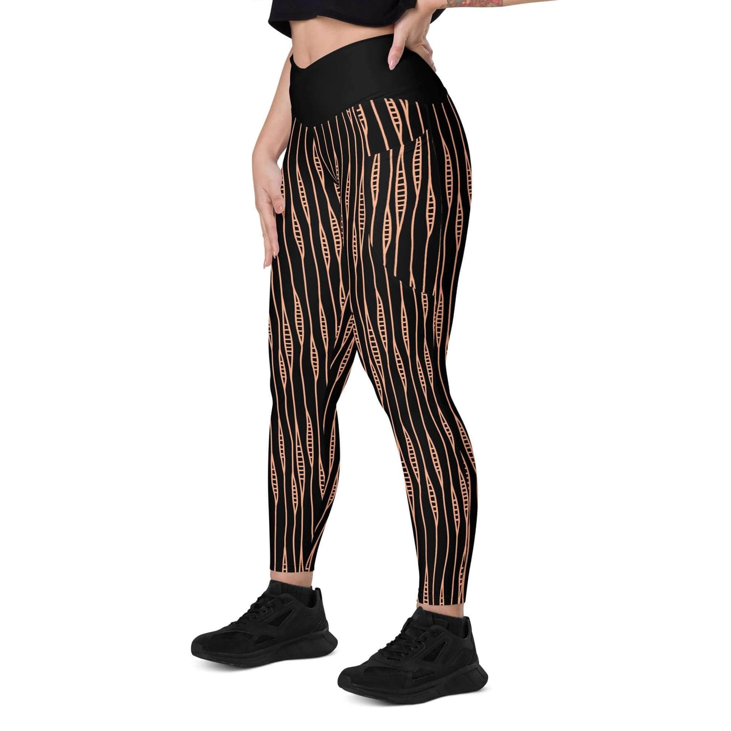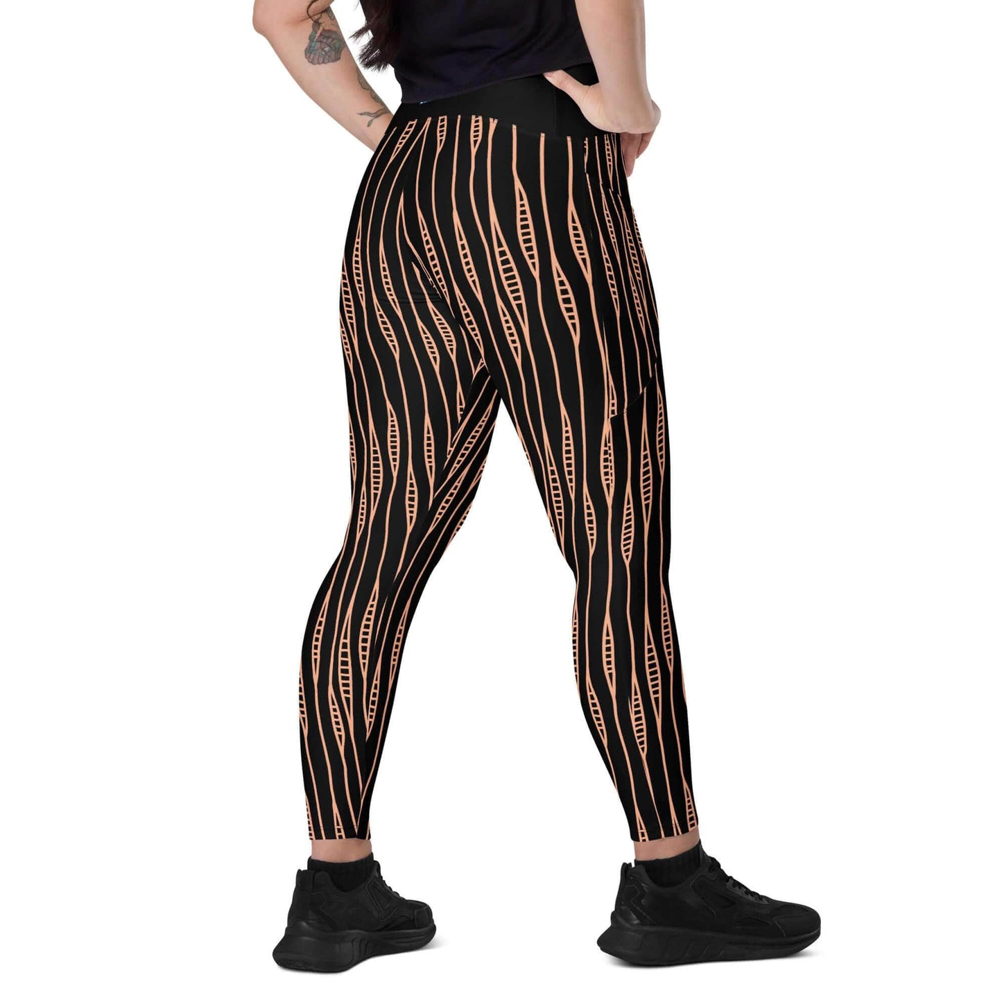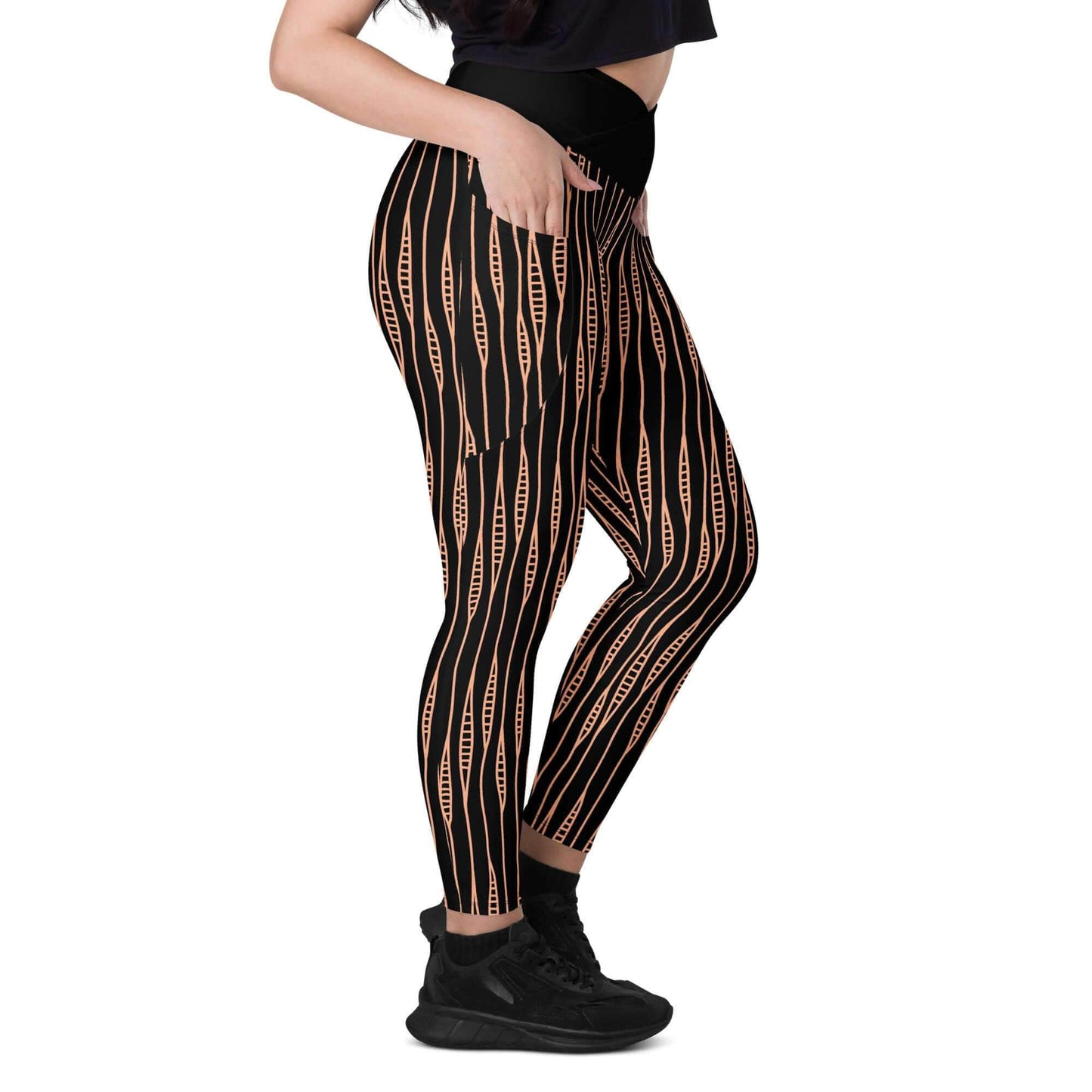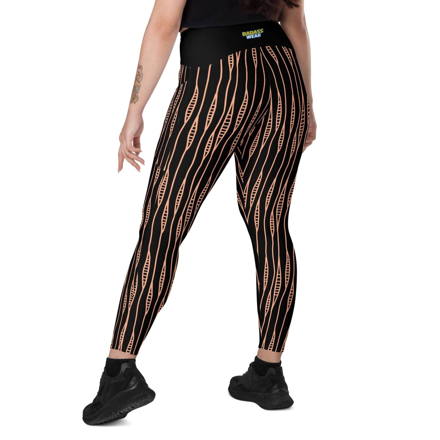 Badass Wear: Recycled Crossover Leggings with Pockets – Black with Gold-Brown Pattern