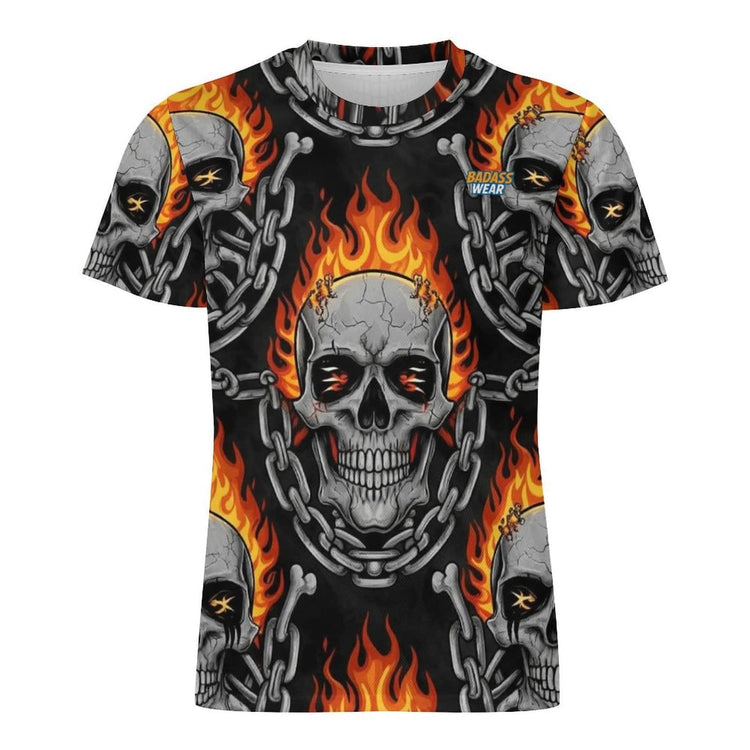 Break the Chains with the "Badass Wear" Flaming Skull T-Shirt