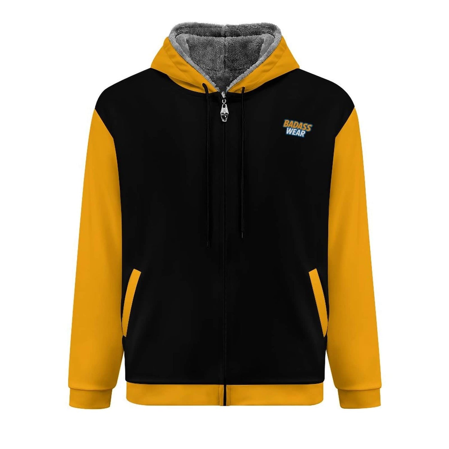 Men's Double-Layer Fleece Zippered Hoodie Black & yellow