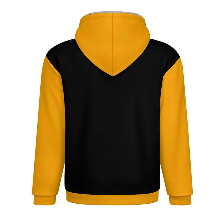 Men's Double Layer Fleece Zippered Hoodie Black & Yellow