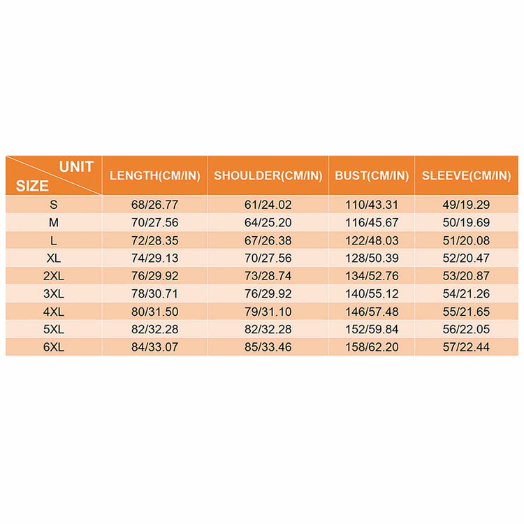 • Available in S,M,L,XL,2XL,3XL,4XL,5XL,6XL. Please refer to the size chart below to select the appropriate size.